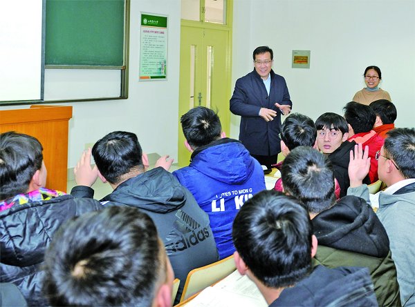 初春的山农校园,处处生机勃勃、充满活力。上午10点,在南校区W405教室,党委书记徐剑波听取了林学院木材专业青年教师李琪的 《木材切削原理与刀具》第一节课。李琪主要研究生物质能源及材料的开发,四年前从美国密西西比州立大学作为人才引进到林学院。她上课重点突出,逻辑清晰,还充满青春朝气,不时与学生幽默互动。徐剑波全神贯注听课,观察着同学们的反应,并随手在本子上做记录。下课后,徐剑波与李琪老师和同学们亲切交流,称赞李琪老师的课讲得好,夸赞同学们听课认真。他微笑着问有多少同学第一志愿报考了木材专业,一多半同学哗啦啦把手举过头顶,徐剑波非常高兴,鼓励同学们注重学习方法,用心学好专业,提高综合素质,努力成长为社会主义事业的合格建设者和可靠接班人。